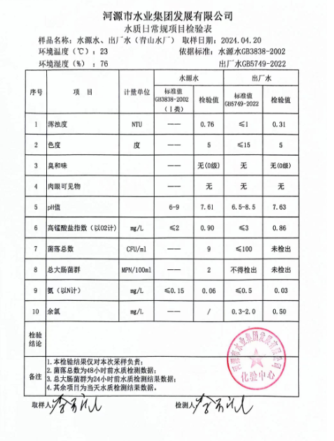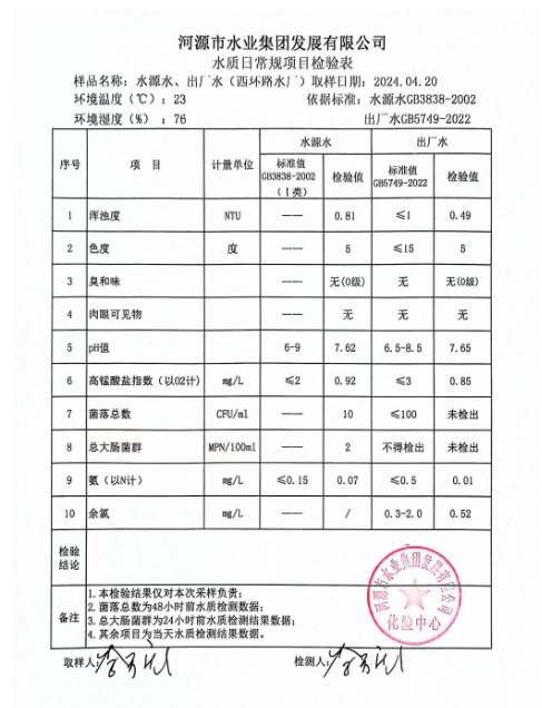 2024年4月20日水質(zhì)檢驗報告