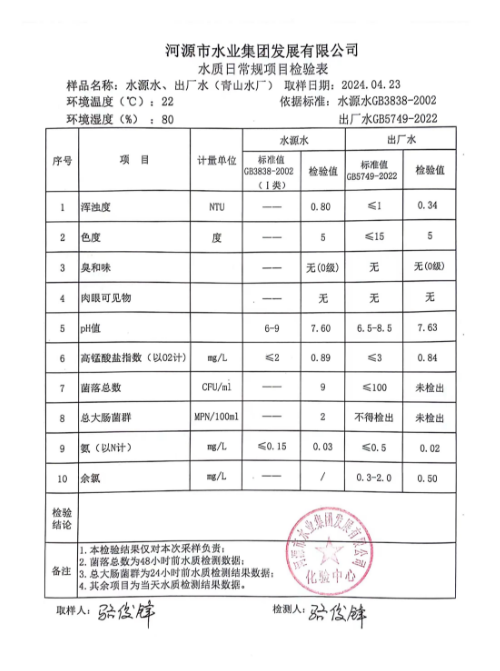2024年4月23日水質(zhì)檢驗報告 ???