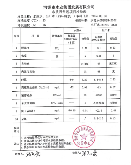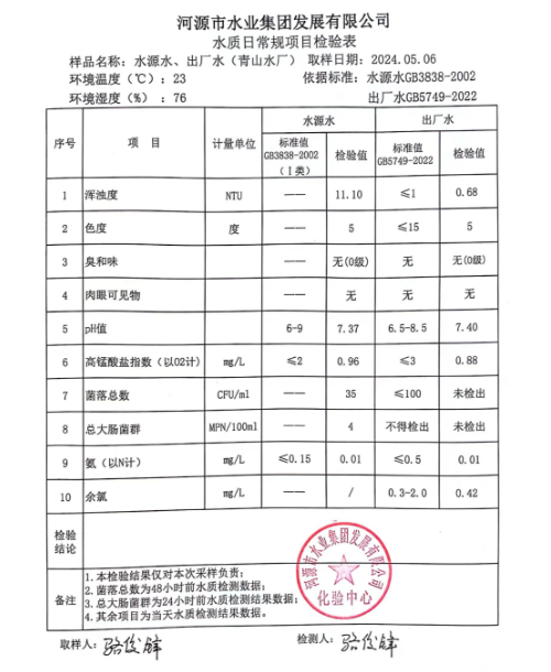 2024年5月6日水質(zhì)檢驗報告 ???