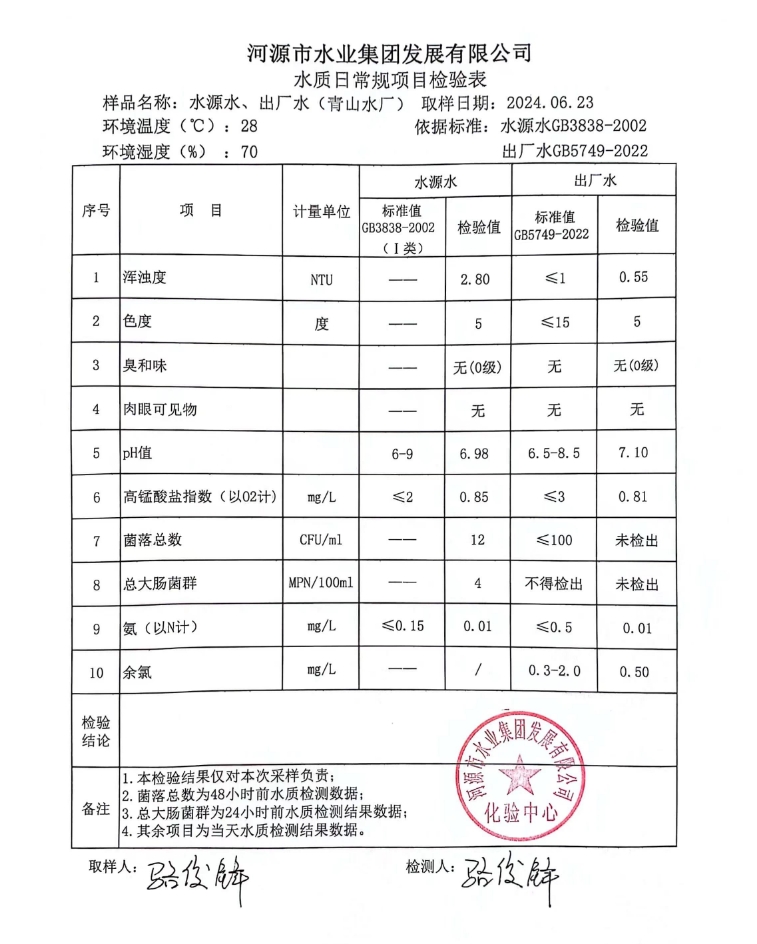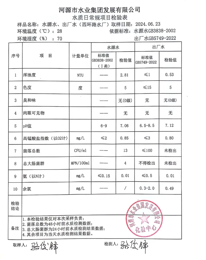 2024年6月23日水質(zhì)檢驗報告