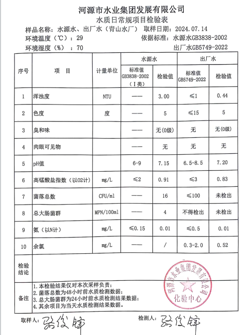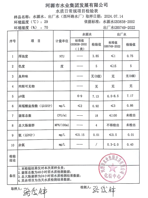 2024年7月14日水質(zhì)檢驗報告