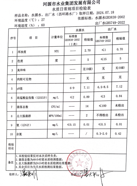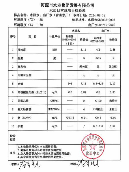 2024年7月18日水質(zhì)檢驗報告