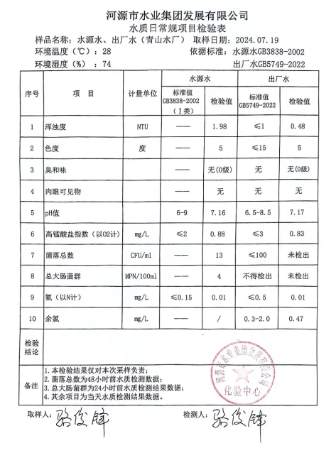 2024年7月19日水質(zhì)檢驗報告