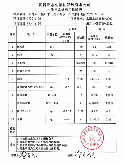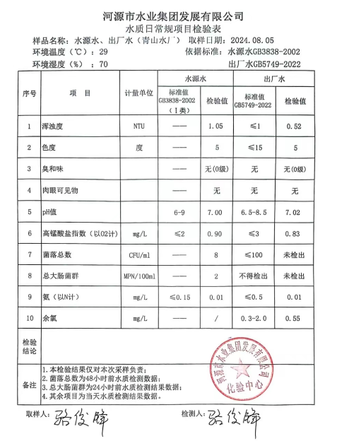 2024年8月5日水質(zhì)檢驗報告