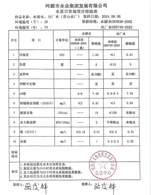 2024年8月6日水質(zhì)檢驗報告