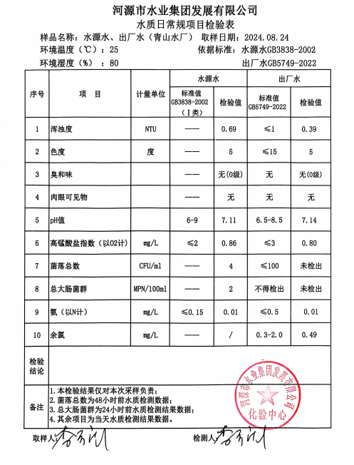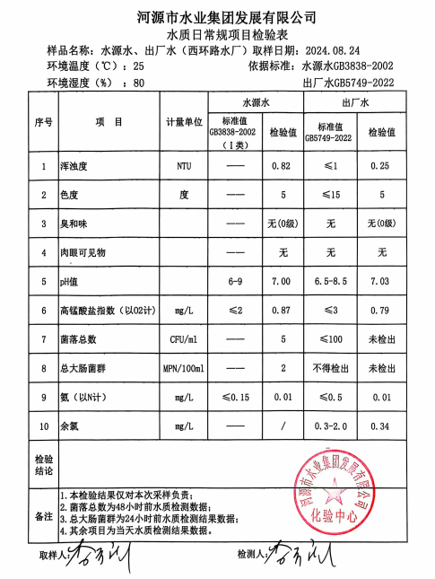 2024年8月24日水質(zhì)檢驗報告